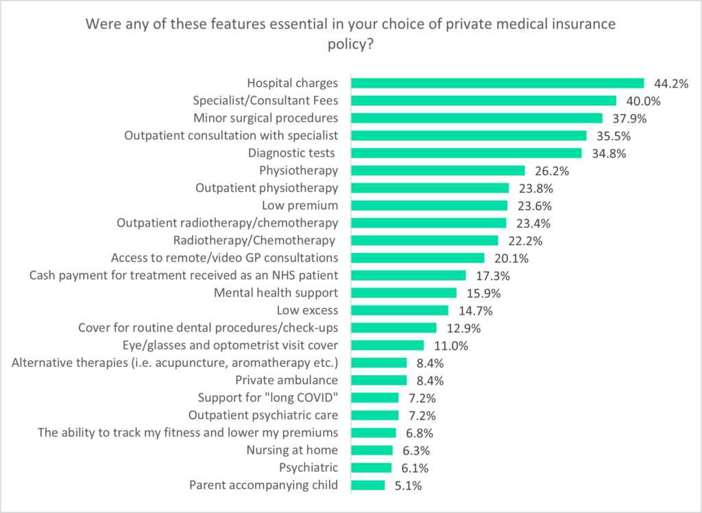 Respondents to GlobalData’s 2022 UK Insurance Consumer Survey stated that low premiums (23.6%) are a crucial component of PMI. This comes as more individuals evaluate their expenses amid the cost-of-living crisis. Meanwhile, coverage for hospital charges (44.2%), specialist/consultant fees (40.0%), and minor surgical procedures (37.9%) are the top three features consumers find essential in PMI policies – all of which are found in the tiered PMI offered by National Friendly.