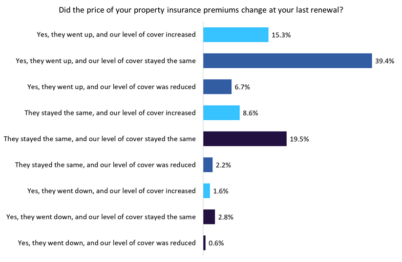 Our survey also indicates that a significant proportion of SMEs (25.5%) have sought to increase their level of property cover as inflation bites and the pitfalls of underinsurance become more apparent. SMEs may find that policies become (at best) insufficient or (at worst) invalidated depending on the level of underinsurance. Alleviating these concerns can reduce the potential impact of adverse weather or major claims (such as fire). The industry has clearly done well to educate clients in this regard, with the cost-of-living crisis likely reducing the number of SMEs that would have increased cover if they could. Given that 46.1% of SMEs are paying higher premiums than in 2021 for the same level or less cover, it is likely that these firms would have been able to afford extra capacity had the hardened market rates not further priced them out.