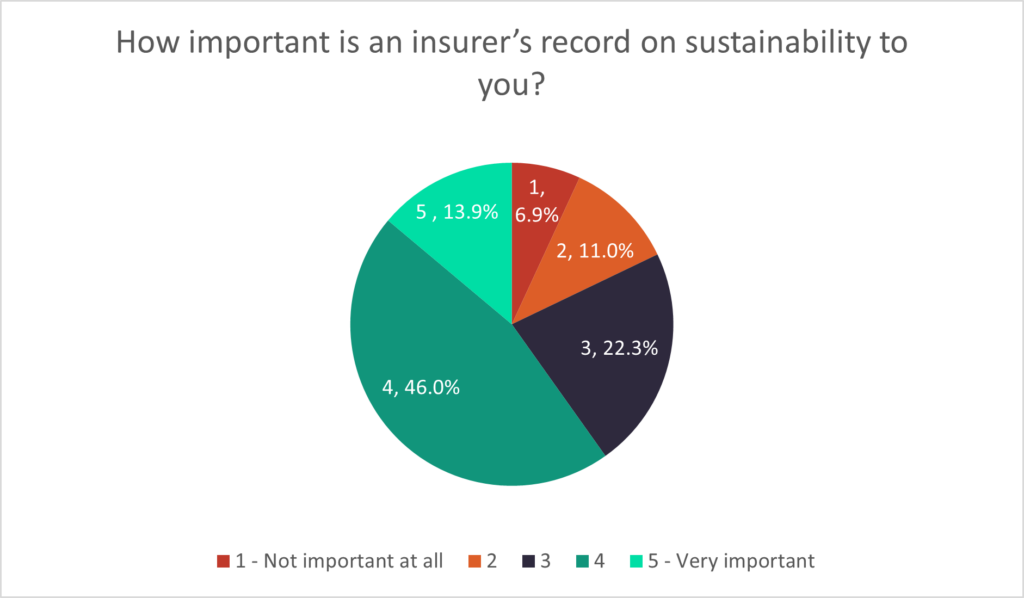 As part of GlobalData’s 2021 UK Insurance Consumer Survey, consumers were asked to rank the importance of an insurer’s record on sustainability (with 1 being “not important at all” and 5 being “very important”). The survey found that 59.9% of consumers find it either important or very important for insurers to have a good record on sustainability when choosing a provider. This shows that awareness about sustainability is growing among consumers.