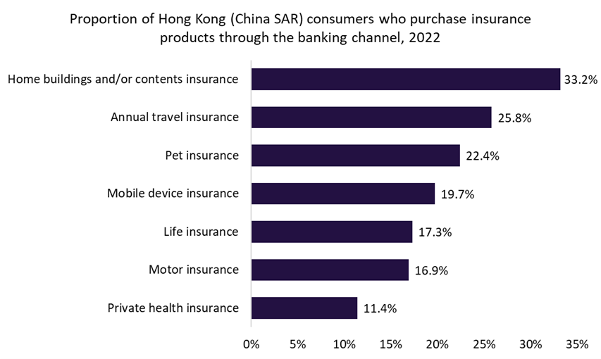 The bank channel is relatively popular for purchasing insurance in Hong Kong (China SAR), with almost a third of consumers purchasing some form of household insurance product through this channel. This provides further evidence that collaborating with a bank would be an excellent avenue for growth for Chubb.