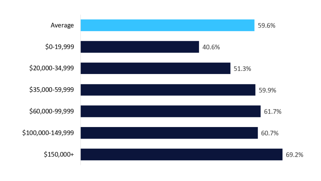 Private health insurance penetration rates among US consumers, by annual household income, 2024
