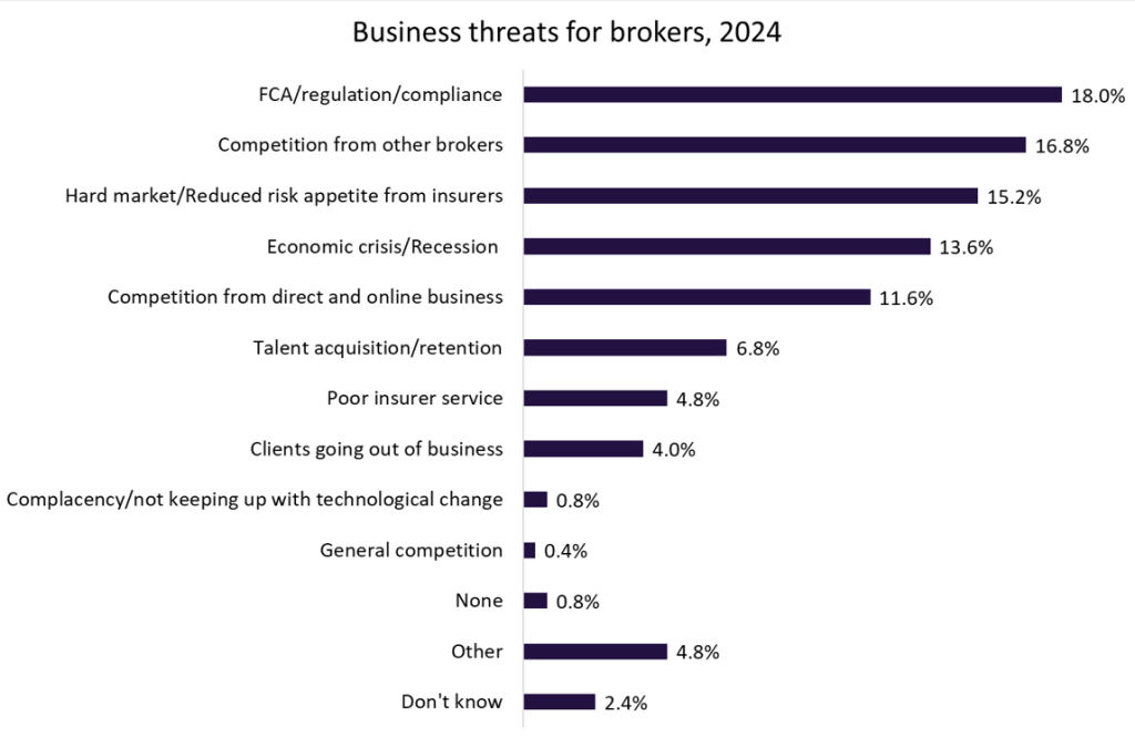 Despite just 6.8% of brokers citing talent acquisition and retention as a threat to their business, this remains a concern for many. A survey conducted by Ecclesiastical among 250 UK brokers found that 56% of respondents believe the industry is facing a potential talent crisis. Furthermore, while 66% of firms are keen to hire younger talent, 50% of brokers surveyed report challenges in recruiting individuals aged 30 and under.