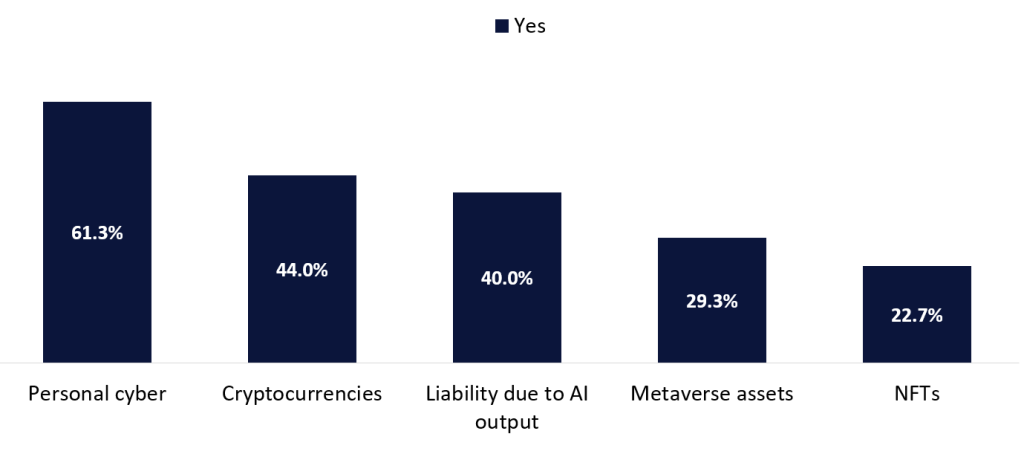 A GlobalData poll conducted on Life Insurance International in Q1/Q2 2024 explored the appetite among business executives for several insurance products. While personal cyber insurance was the most-desirable product, attracting 61.3% of responses, cover for cryptocurrencies (44%) and liability due to dysfunctional AI output (40%) garnered significant interest. Yet demand for coverage for erroneous AI output is expected to increase as enterprises race to implement AI and automation; embedding them into their core operations.