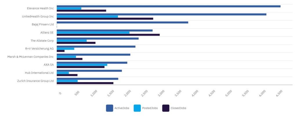 UnitedHealth followed closely with 6,216 job postings active in the market. It also posted for another 1,810 jobs in July 2023 and closed 2,856 postings.