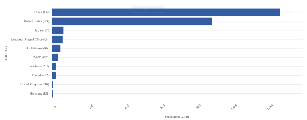 China and the US were the top two authorities for insurance patents in Q3 2023 with 1,273 and 893 respectively.