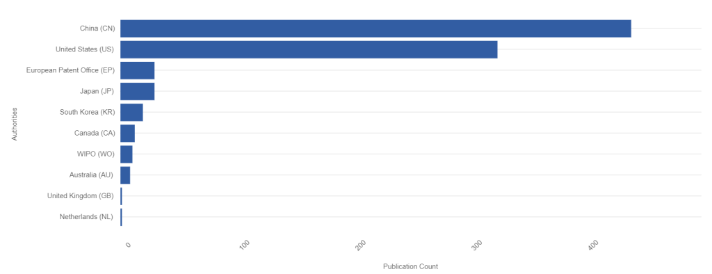 The top ten also has Canada, the WPO, Australia, the UK and the Netherlands as authorities delivering patents over the month.