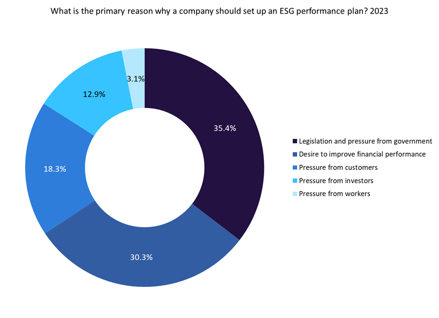As per GlobalData’s ESG Sentiment Poll conducted in Q4 2023, 35.4% of respondents believe the primary reason a company should set an ESG performance plan is because of legislation and pressure from the government. Other leading reasons include a desire to improve financial performance (30.3%), pressure from customers (18.3%), and pressure from investors (12.9%).